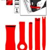 Kilit açma alet setimiz (5 adet), aracınızın iç kaplamasını başka herhangi bir hasar olmadan basitleştirmenize yardımcı olur. Döşeme parçalarının, plastik klipslerin ve ulaşılması zor yerlerin hasarsız montajı ve demontajı için mükemmel şekilde kullanılabilir. Kolay depolama için taşıma çantasında 5 parçalı özel alet kilit açma seti teslim edilir.